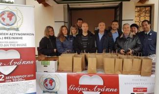 Μέλη του Ενωτικού Κινήματος Αστυνομικών -ΕΚΑ- Θεσσαλονίκης συμμετείχαν στην πετυχημένη κοινωνική εκδήλωση της Διεθνούς Ένωσης Αστυνομικών ΙΡΑ Ν. Θεσσαλονίκης που πραγματοποιήθηκε στην Ενορία του Ιερού Ναού Αγίων Πάντων Θεσσαλονίκης, την Πέμπτη 12 Δεκεμβρίου 2019, στο γεύμα αγάπης και στην προσφορά ενός (1) περίπου τόνου τροφίμων στους συνανθρώπους μας που έχουν ανάγκη. Συγχαρητήρια στην ΙΡΑ Ν. Θεσσαλονίκης και σε όλους όσους συμμετείχαν, ενώ αξίζει να τονιστεί ότι τέτοιες δράσεις και πρωτοβουλίες πρέπει να συνεχιστούν!
