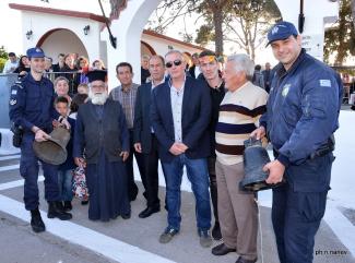 Οι Αστυνομικοί οχι μόνο βρήκαν τις κλεμμένες καμπάνες αλλά τις πήγαν οι ιδιοι στο Εκκλησάκι του Αγίου Γεωργίου στα Μαριτσα με επικεφαλής τον Διοικητή τους όπου τους περίμενε πλήθος πιστών.