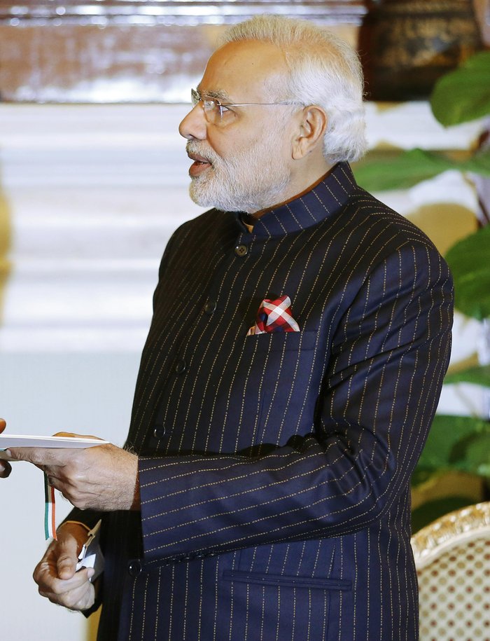 Το φόρεσε κατά τη συνάντησή του με τον Πρόεδρο των ΗΠΑ Μπαράκ Ομπάμα στο Νέο Δελχί στις 25 Ιανουαρίου 2015.
