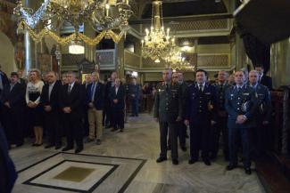 Η πανηγυρική Θεία Λειτουργία, τελέστηκε στον Μητροπολιτικό ναό του Αγίου Αθανασίου χοροστατούντος του Σεβασμιωτάτου Μητροπολίτου Ιωαννίνων κ. Μαξίμου, παρουσία της τοπικής Ηγεσίας του σώματος, αρχών του τόπου, επίσημων προσκεκλημένων, εκπροσώπων πολιτικών κομμάτων και συνδικαλιστικών φορέων, συναδέλφων εν ενεργεία και αποστράτων, καθώς και πλήθους πιστών.