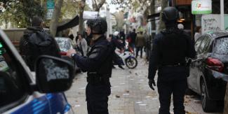 Οι αντιεξουσιαστές άρχισαν να πετάνε τραπέζια και καθίσματα, έριξαν μολότοφ και έσπασαν βιτρίνες καταστημάτων, ενώ έγραψαν στους τοίχους συνθήματα υπέρ των καταλήψεων. Οι αστυνομικοί απάντησαν κάνοντας χρήση χημικών, με αποτέλεσμα σε σύντομο χρονικό διάστημα η ατμόσφαιρα να γίνει αποπνικτική.