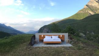 Το δωμάτιο στις Ελβετικές Άλπεις δεν έχει τοίχους, οροφή και μπάνιο και αποτελείται μόνο από ένα κρεβάτι με τα κομοδίνα του.