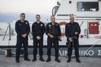 Γι’ αυτό και όταν η “Ε” επιβιβάστηκε στο σκάφος του Κεντρικού Λιμεναρχείου Καλαμάτας για μια περιπολία ρουτίνας στον Μεσσηνιακό Κόλπο, το πλήρωμα μας υποδέχτηκε... πάνοπλο.