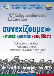 Στις 9 και 10 Δεκεμβρίου 2015, θα πραγματοποιηθεί το 25ο Ετήσιο Εκλογοαπολογιστικό Συνέδριο της Ομοσπονδίας μας στο ξενοδοχείο ΤΙΤΑΝΙΑ (Πανεπιστημίου 52, Αθήνα).