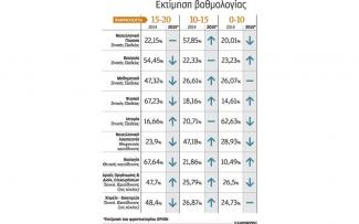• Στη Βιολογία (το 62,5% των υποψηφίων πέρυσι) το 54,45% των γραπτών πάνω από 15 δύσκολα θα επαναληφθεί.