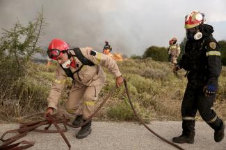 Επίσης, το έργο των πυροσβεστικών δυνάμεων συνδράμουν υδροφόρες της αυτοδιοίκησης.