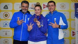 Ένα τρίτο μετάλλιο κατέκτησε στο Παγκόσμιο Κύπελλο σκοποβολής του Καΐρου η Άννα Κορακάκη. Μετά το χρυσό μετάλλιο στο 10άρι αεροβόλο πιστόλι και το χάλκινο που κατέκτησαν μαζί με τον αδελφό της, Διονύση, στο μικτό αγώνισμα των 10μ. με αεροβόλο πιστόλι, σήμερα (4/3) η «χρυσή» Ολυμπιονίκης κρέμασε στο στήθος το χάλκινο μετάλλιο στο αεροβόλο πιστόλι 25μ.