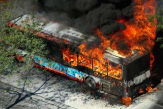 Το δυστύχημα σημειώθηκε το πρωί όταν το λεωφορείο στο οποίο επέβαιναν 56 άνθρωποι προσέκρουσε στο προστατευτικό κιγκλίδωμα σε αυτοκινητόδρομο της περιοχής. Η πυρκαγιά μπορεί να προκλήθηκε από μια διαρροή καυσίμου μετά την πρόσκρουση, σύμφωνα με τις αρχές της περιοχής.