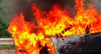 Συγκεκριμένα, το αυτοκίνητο για άγνωστη μέχρι στιγμής αιτία εξετράπη της πορείας του, καρφώθηκε σε ελαιόδεντρο που ήταν δίπλα στο δρόμο και τυλίχτηκε στις φλόγες.