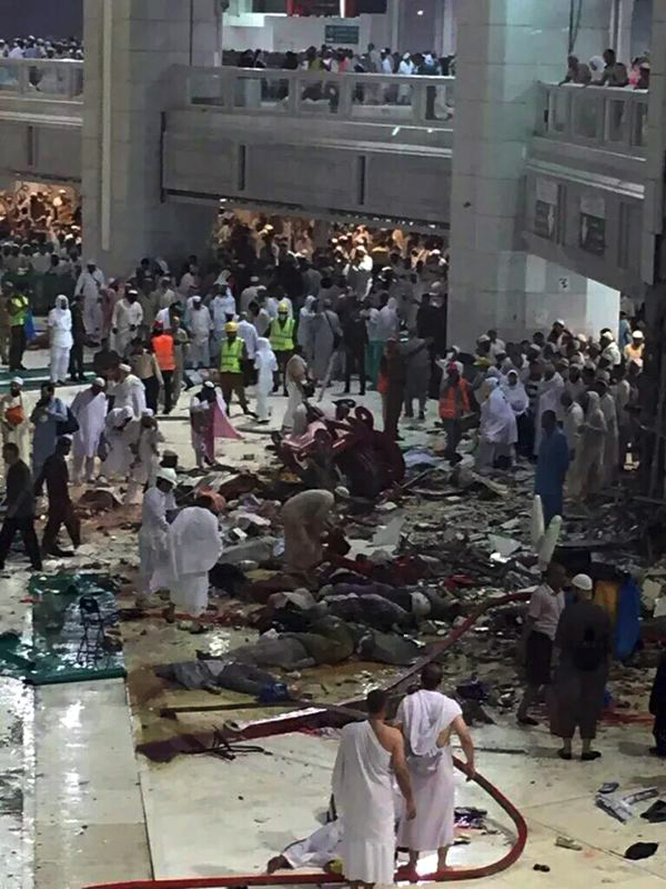 Το τηλεοπτικό δίκτυο Al Arabiya μετέδωσε νωρίτερα ότι ο γερανός κατέρρευσε λόγω των ισχυρών καταιγίδων που πλήττουν την περιοχή.