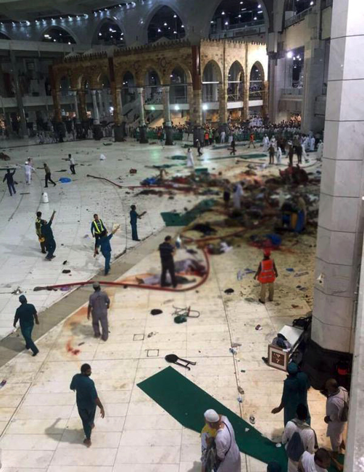 Ελάχιστες πληροφορίες μεταδίδονται σχετικά με τις συνθήκες του δυστυχήματος, ωστόσο στις φωτογραφίες που έχουν αναρτηθεί στους ιστότοπους κοινωνικής δικτύωσης διακρίνονται σοροί να κείτονται σε λίμνες αίματος σε ένα χώρο του τεμένους όπου φαίνεται πως κατέπεσε ένα τμήμα του γερανού.