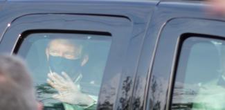 Προς γενική έκπληξη, μια οχηματοπομπή αποτελούμενη από μαύρα SUV εμφανίστηκε μπροστά στις πύλες του νοσοκομείου Ουόλτερ Ριντ νωρίς το βράδυ, κι ο Ντόναλντ Τραμπ, με μάσκα, χαιρέτισε μέσα από το κλειστό παράθυρο του αυτοκινήτου της προεδρίας πολυάριθμους υποστηρικτές του, που είχαν εγκατασταθεί στον χώρο έξω από το νοσοκομείο το Σαββατοκύριακο.