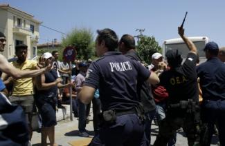 Κάποια στιγμή άρχισαν τα σπρωξίματα και οι μετανάστες ήρθαν στα χέρια μεταξύ τους. Άντρες της αστυνομίας και του λιμενικού, που σύμφωνα με πληροφορίες δεν ξεπερνούσαν τα 10 άτομα, επενέβησαν και τότε οι μετανάστες συγκρούστηκαν μαζί τους.