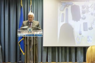 Παρουσίαση από τον Διοικητή της Διεύθυνσης Ασφαλείας Αττικής και τον Εκπρόσωπο Τύπου της ΕΛ.ΑΣ για 3 υποθέσεις και συγκεκριμένα για εξιχνίαση ανθρωποκτονίας ημεδαπής στη Μάνδρα Αττικής τον Μάιο του 2018, για εξάρθρωση εγκληματικής ομάδας που διέπραττε ληστείες σε Αττική, Φθιώτιδα και Βοιωτία και για την εξέλιξη της έρευνας για την υπόθεση της πρόσφατης ληστείας στα ΕΛ.ΤΑ στα Βίλια Αττικής