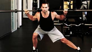 Πόδια κλειστά και κρατάς την μπάρα πίσω από την πλάτη. Κρατώντας σταθερό το αριστερό πόδι, κάνε ένα βήμα στα πλάγια με το δεξί. Καθώς λυγίζει το γόνατό σου, φρόντισε να χαμηλώνεις το κορμί σου κρατώντας όμως ίσιο τον κορμό σου.