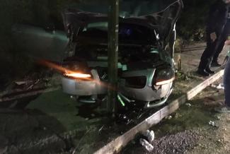 Σύμφωνα με πληροφορίες, αυτοκίνητο μάρκας Audi TT, που οδηγούσε νεαρός και είχε κατεύθυνση από Καμαρούλα προς Αγρίνιο, εκτράπηκε της πορείας του, και αφού προσέκρουσε στο πεζοδρόμιο, παρέσυρε τους δυο πεζούς για να καταλήξει σε κώλωνα ηλεκτροφωτισμού.