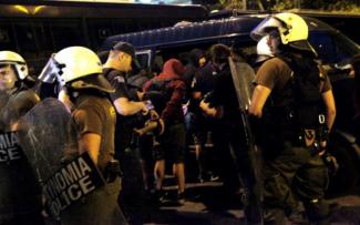 Τριάντα έξι προσαγωγές, εκ των οποίων οι 32 έγιναν συλλήψεις, έγιναν χθες το βράδυ στα επεισόδια που σημειώθηκαν μπροστά στο κτίριο της Βουλής, κατά τη διάρκεια της συγκέντρωσης «Μένουμε Ευρώπη».