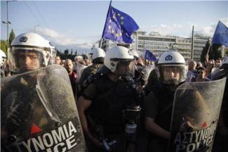 «Μένουμε Ευρώπη», «Ελλάς, Ευρώπη, δημοκρατία» και «παραιτηθείτε» ήταν τα συνθήματα που ακούστηκαν στη συγκέντρωσης, όπου η συμμετοχή των πολιτών ήταν μεγάλη, παρά τη βροχή.