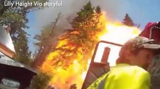 Ο Στέισι Μάχαν κατέγραφε με το κινητό του τηλέφωνο την επιχείρηση των ανδρών του για να θέσουν υπό έλεγχο μια φωτιά στο βόρειο Μέιν.