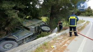 Τροχαίο ατύχημα με ανατροπή στρατιωτικού οχήματος σημειώθηκε πριν απο λίγα λεπτά στην περιοχή Κοσκινού κοντά στην Euromedica.