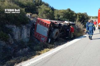 Ένα πυροσβεστικό όχημα 2,5 τόνων στο οποίο επέβαιναν δυο πυροσβέστες εξετράπη της πορείας του και ανετράπη το πρωί της Δευτέρας 16 Αυγούστου στην Αργολίδα.