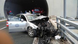 Τροχαίο σημειώθηκε λίγο πριν τις 3 το μεσημέρι στην Εγνατία οδό στο τμήμα μεταξύ Βέροιας και Πολυμύλου στην έξοδο της σήραγγας 10.