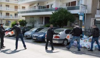 Εξοπλισμένοι με γάντια και μάσκες, τα μέλη του Ρουβίκωνα παρέδωσαν τις προμήθειες στο Γηροκομείο.