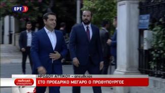 Ο πρωθυπουργός Αλέξης Τσίπρας γίνεται δεκτός από τον Πρόεδρο της Δημοκρατίας Προκόπη Παυλόπουλο στο Προεδρικό Μέγαρο, προκειμένου να ζητήσει τη διάλυση της Βουλής και την προκήρυξη πρόωρων εκλογών.