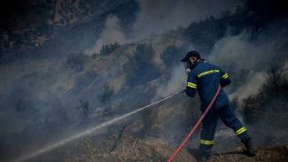 Η πρώτη ξέσπασε στο Λατομείο Μαρκοπούλου, σε ξηρά χόρτα και χαμηλή βλάστηση, περίπου στις 5 το απόγευμα. Επί τόπου έσπευσαν πέντε οχήματα της Πυροσβεστικής με 15 πυροσβέστες.