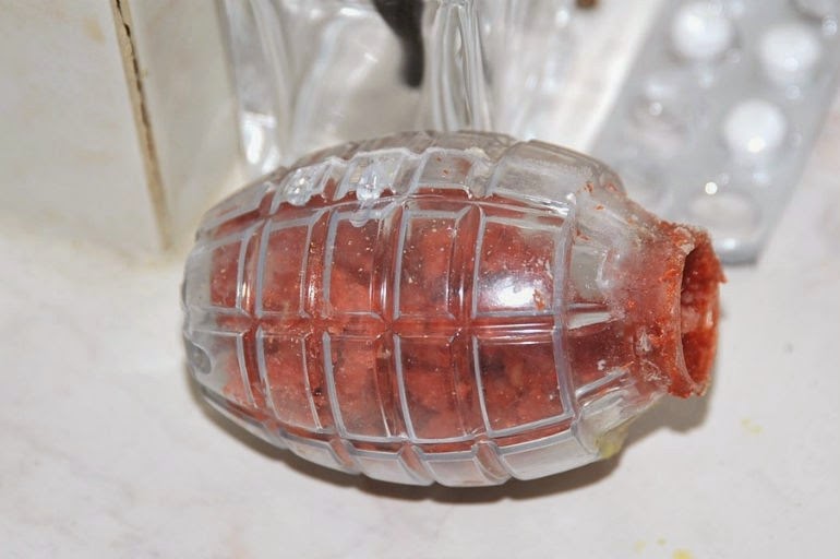 • Ένα (1) πλαστικό ομοίωμα χειροβομβίδας περιέχον ζελατινοδυναμίτιδα.