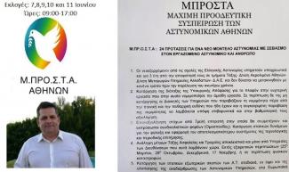 Συνάδελφοι, στις προσεχείς εκλογές της Ένωσης αστυνομικών υπαλλήλων Αθηνών που διεξάγονται στις 7,8,9,10 και 11 Ιουνίου, είμαι υποψήφιος με το συνδυασμό ΜΠΡΟΣΤΑ Αθηνών.