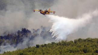 Από το πρωί της Τετάρτης κάνουν ρίψεις νερού τα εναέρια μέσα και συγκεκριμένα οκτώ ελικόπτερα και 3 αεροσκάφη. Στη μάχη της κατάσβεσης έχει ριχτεί σήμερα και το ρωσικό Beriev.
