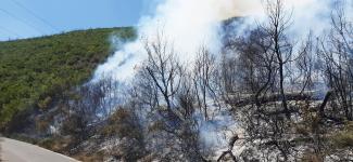 Στην πυρκαγιά επιχειρούν 40 πυροσβέστες, 14 οχήματα, 2 ομάδες πεζοπόρου τμήματος, 1 ελικόπτερο και δύο αεροσκάφη.