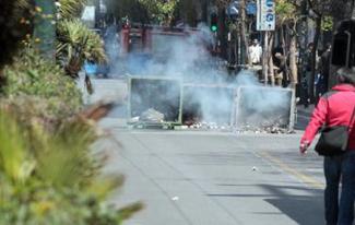 Ομάδα 15 περίπου ατόμων βγήκε από τον περίβολο της Σχολής, έβαλε φωτιά σε κάδο απορριμμάτων και ξαναμπήκε στην ΑΣΟΕΕ όπου και παραμένει.