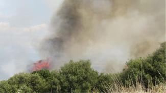 Στην περιοχή πνέουν ισχυροί άνεμοι γεγονός που δυσκολεύει το έργο των πυροσβεστών.