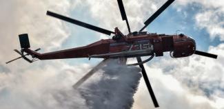 Στο σημείο έσπευσαν και επιχειρούν 16 πυροσβέστες με 8 οχήματα και 2 ελικόπτερα.