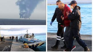 Την ίδια ώρα δυο πλοία με κανόνι έχουν παραπλεύσει στο φλεγόμενο πλοίο προσπαθούν να σβήσουν την μεγάλη φωτιά.
