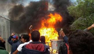 Η φωτιά που ενισχύει ο ισχυρός άνεμος που φυσάει στην περιοχή αυτή τη στιγμή, καίει μέρος του καταυλισμού αιτούντων άσυλο μέσα στο Κέντρο Υποδοχής και Ταυτοποίησης της Μόριας.