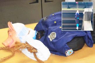 Κατά την άφιξή τους, οι αρχές ανακάλυψαν ότι δεν υπήρχε αυτοκτονία και ότι η φιγούρα που κρεμόταν από τη γέφυρα ήταν μια ψεύτικη κούκλα ντυμένη ως αστυνομικός και φορώντας μια μάσκα γουρουνιού.