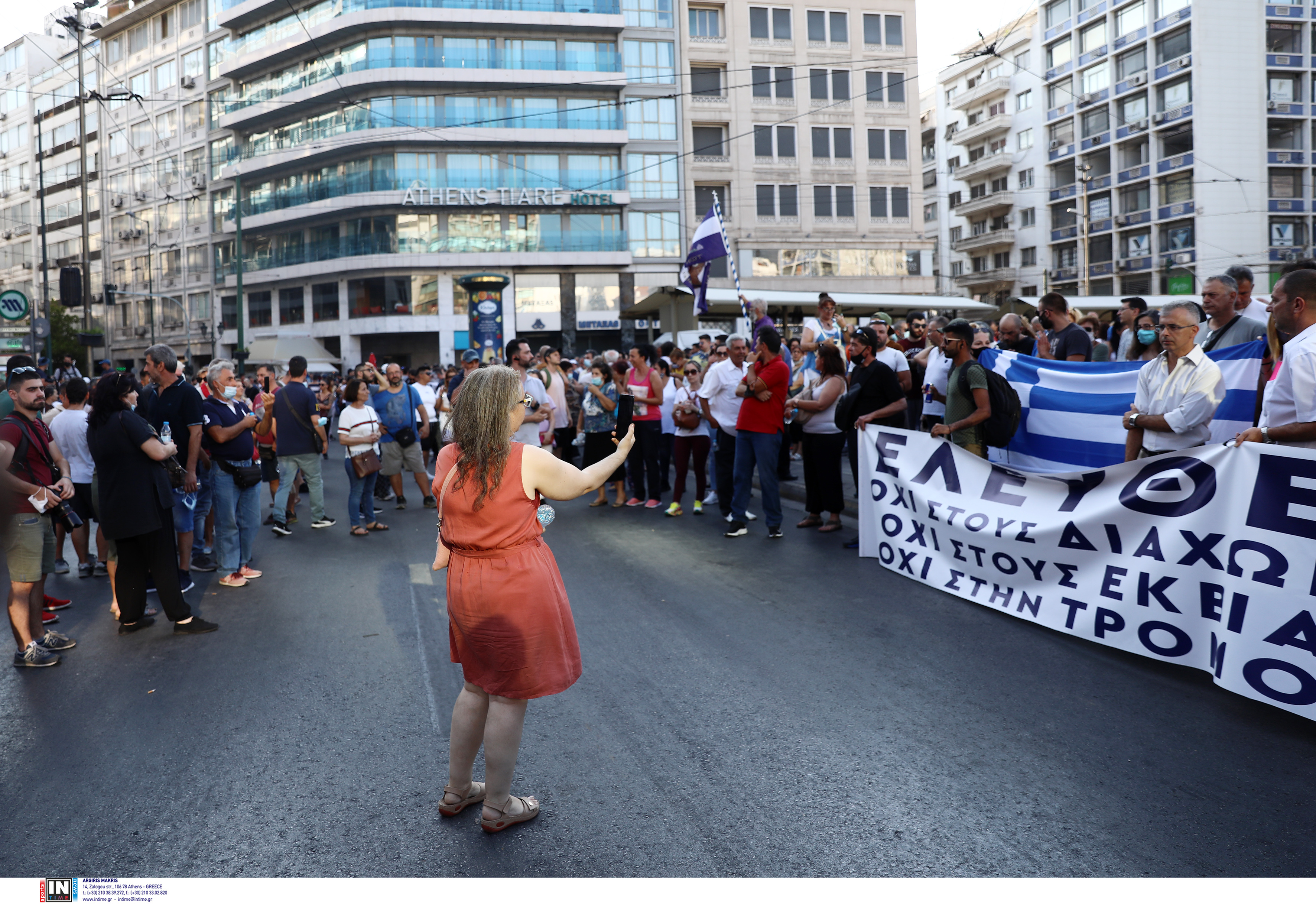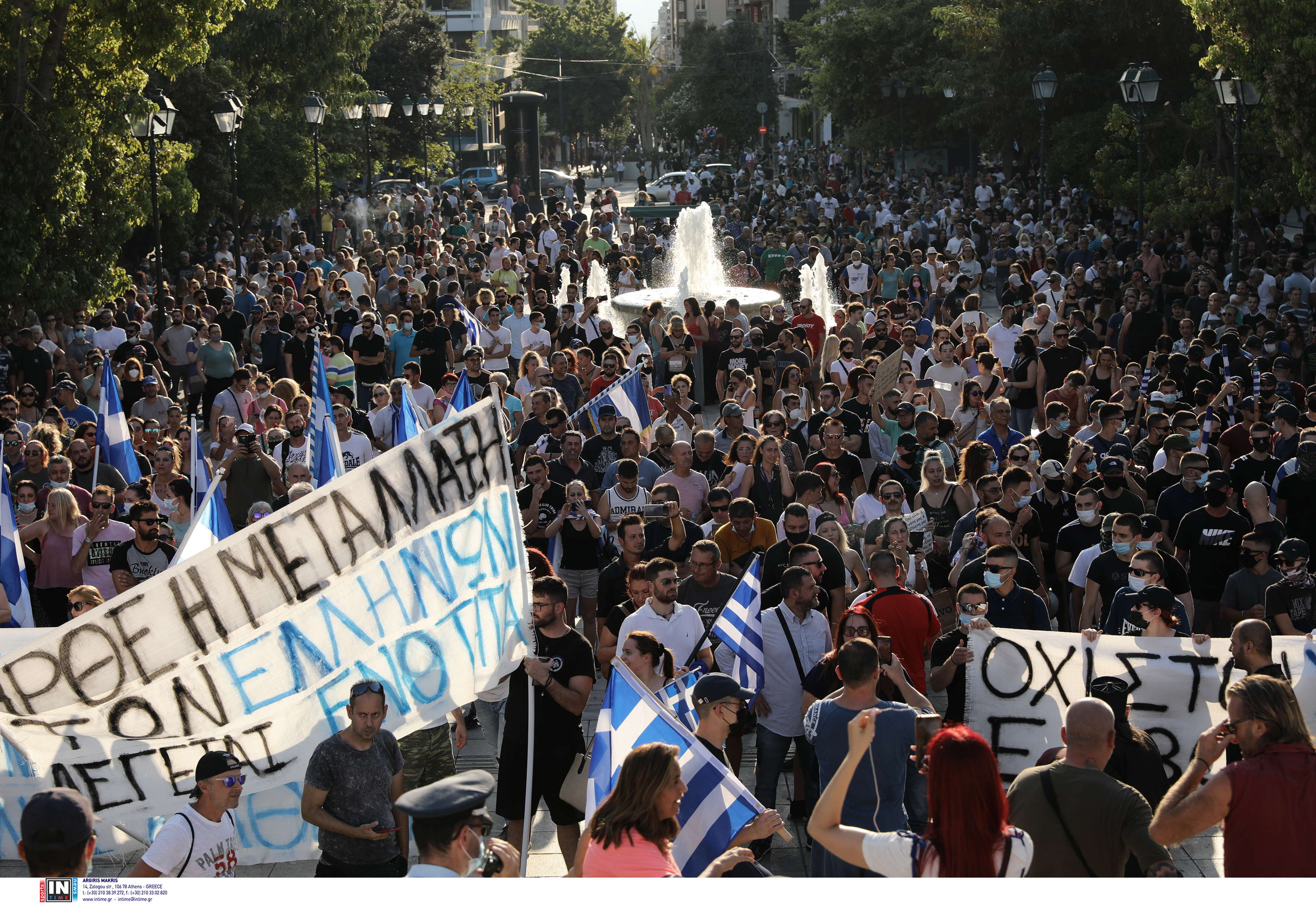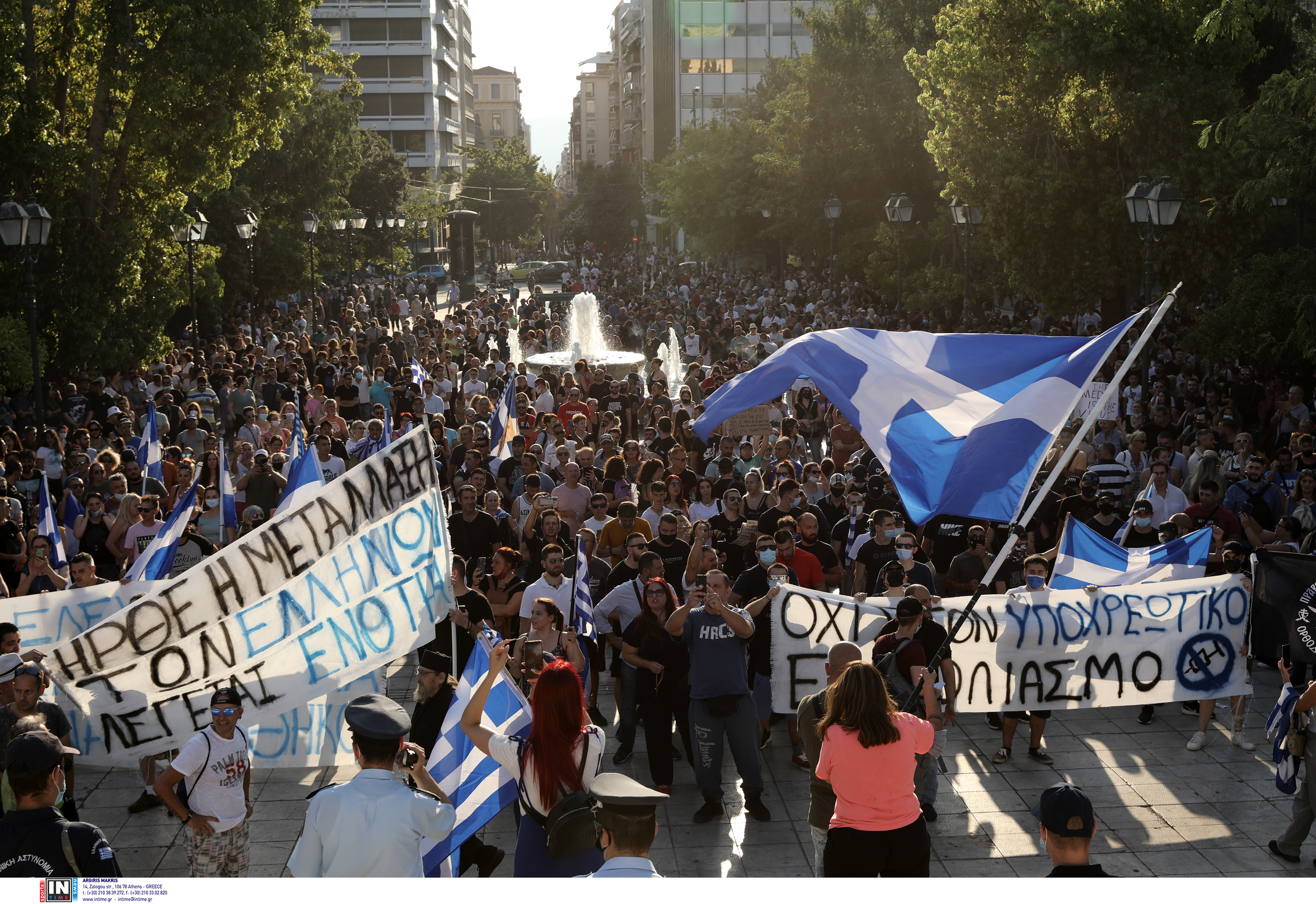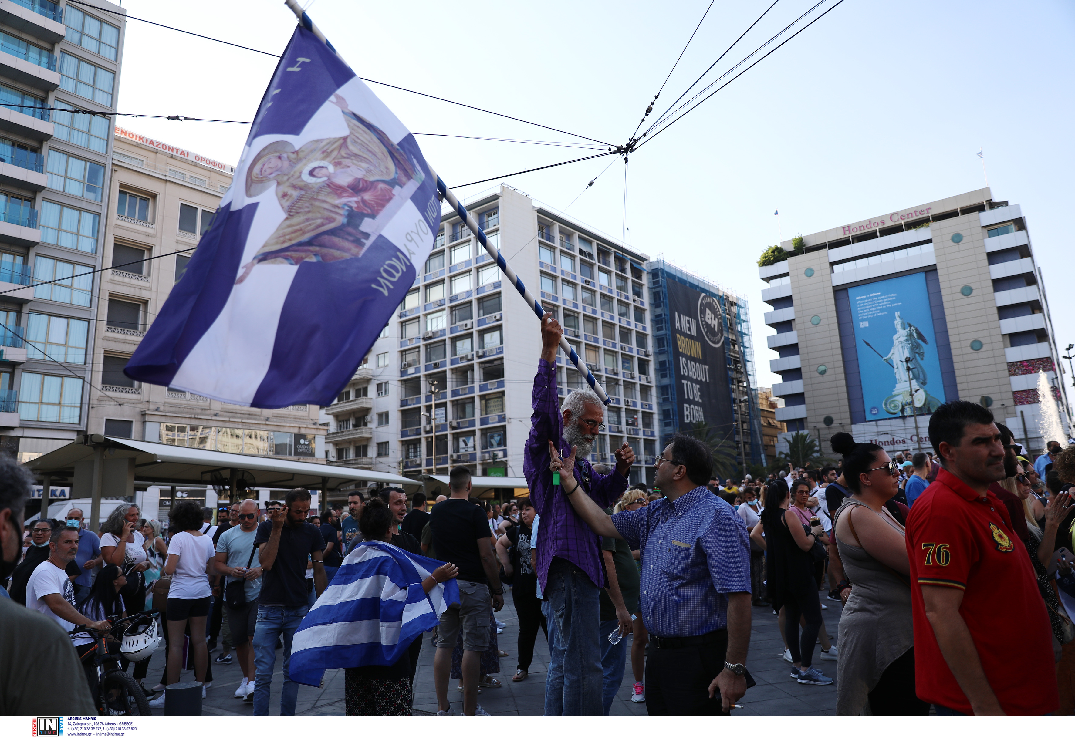 Αρκετά άτομα έχουν συγκεντρωθεί στην πλατεία του Συντάγματος και διαμαρτύρονται ενάντια στον εμβολιασμό για τον κορονοϊό, αλλά και το μέτρο του υποχρεωτικού εμβολιασμού.