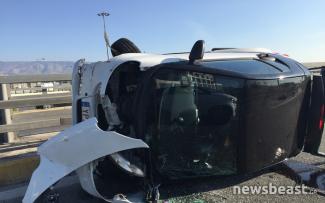 Ο οδηγός του οχήματος έχει βγει από το αυτοκίνητο και δεν τραυματίστηκε, αφού άλλοι οδηγοί έσπευσαν και τον απεγκλώβισαν έγκαιρα, σύμφωνα με τα όσα μετέδωσε ο ΣΚΑΙ.