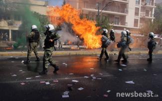 Για να σβήσουν οι φωτιές και να απωθηθούν οι συγκεντρωμένοι οι αύρες της ΕΛ.ΑΣ. έριχναν συνεχώς νερό.