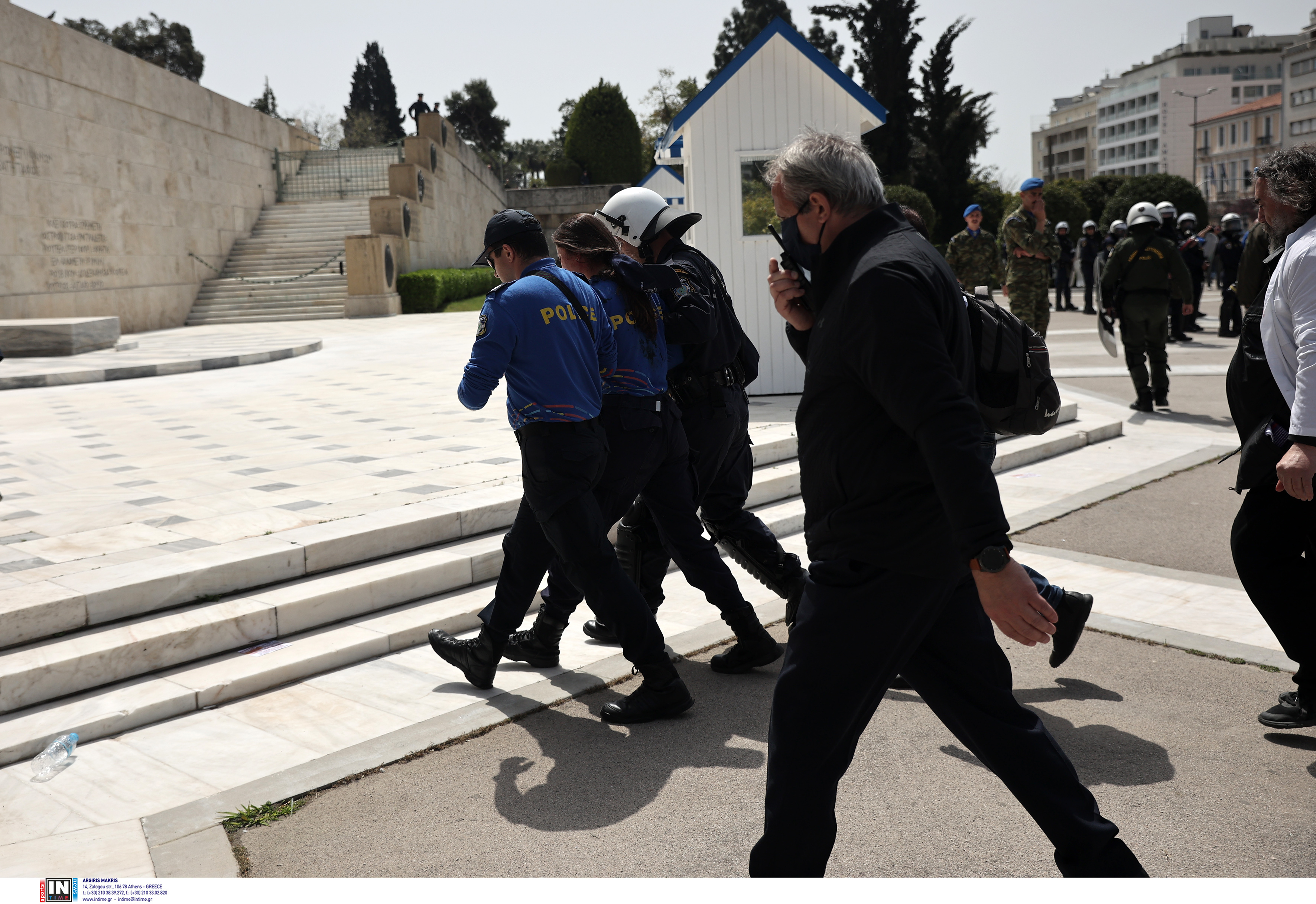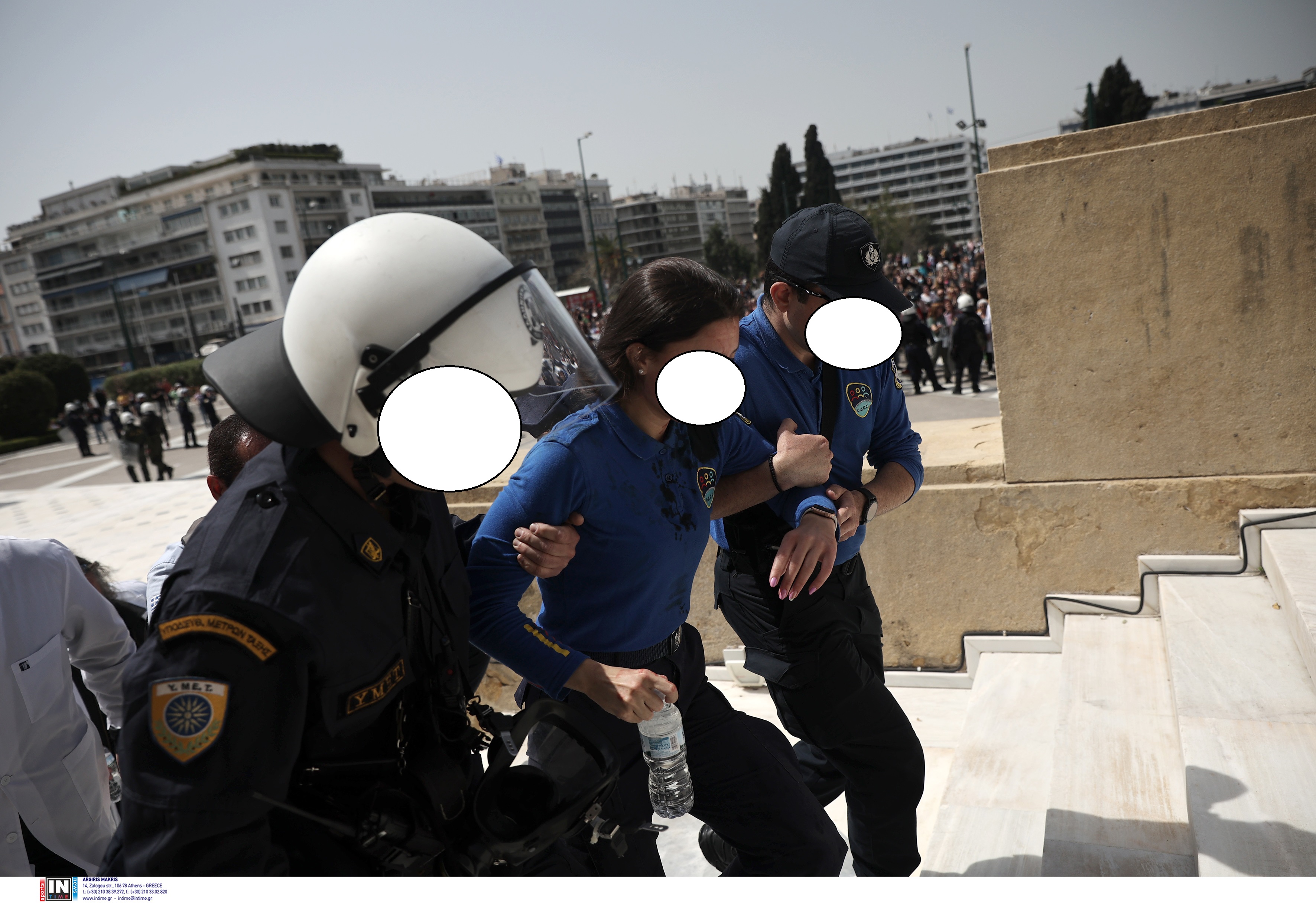 Μπροστά από τη Βουλή εκείνη την ώρα διαδήλωναν οι υγειονομικοί, που έσπευσαν να προσφέρουν τις πρώτες βοήθειες στην αστυνομικό.