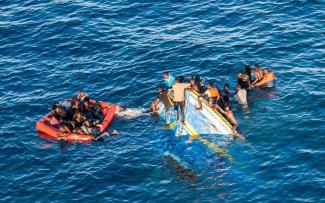 Πανικόβλητοι μετανάστες από αφρικανικές χώρες δίνουν τον ύστατο αγώνα επιβίωσης αναζητώντας ένα κομμάτι ξύλο από το βυθιζόμενο σκάφος τους για να κρατηθούν στην επιφάνεια της θάλασσας- και στη ζωή.