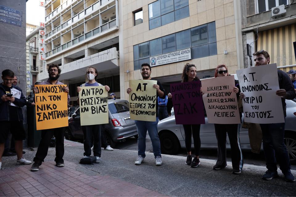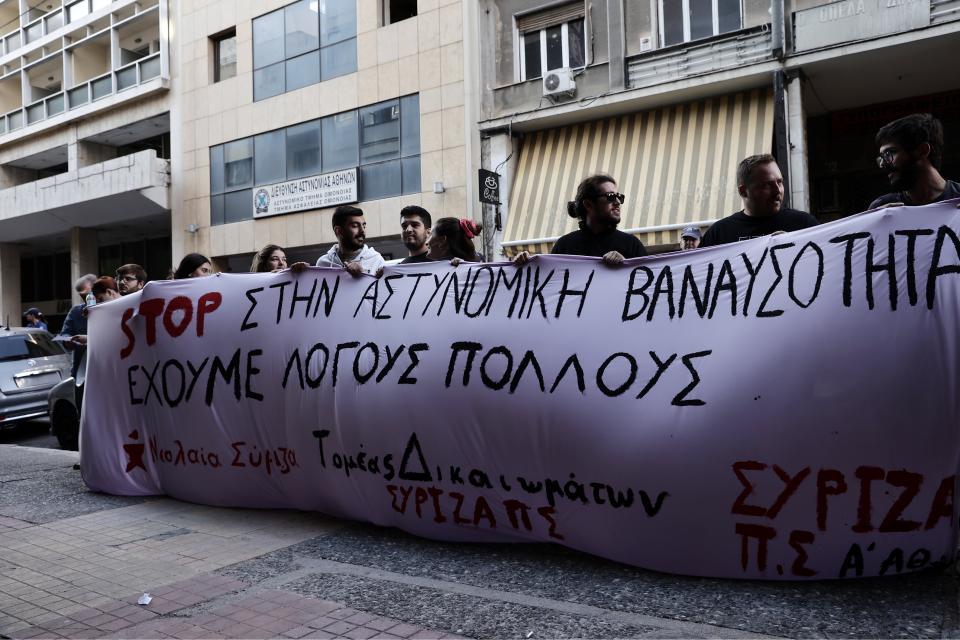Συγκέντρωση διαμαρτυρίας πραγματοποίησαν έξω από το Αστυνομικό Τμήμα Ομόνοιας, από μέλη και Βουλευτές του ΣΥΡΙΖΑ.