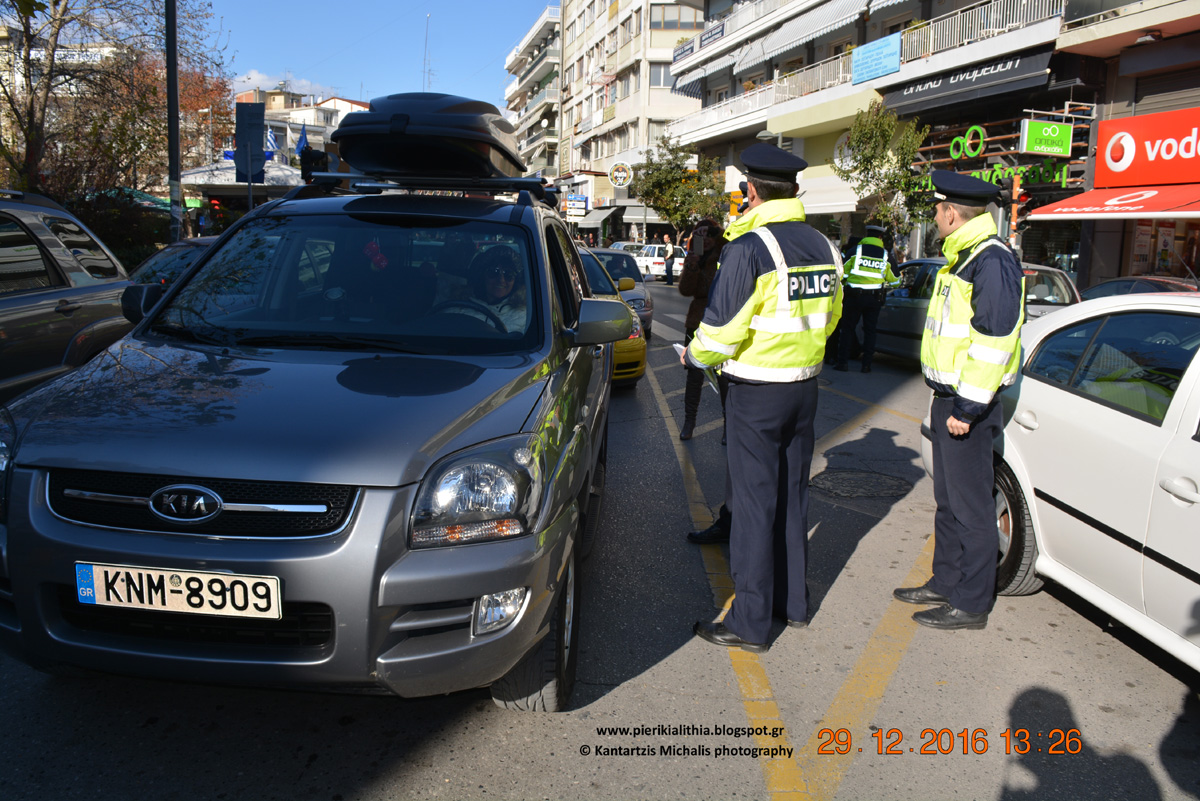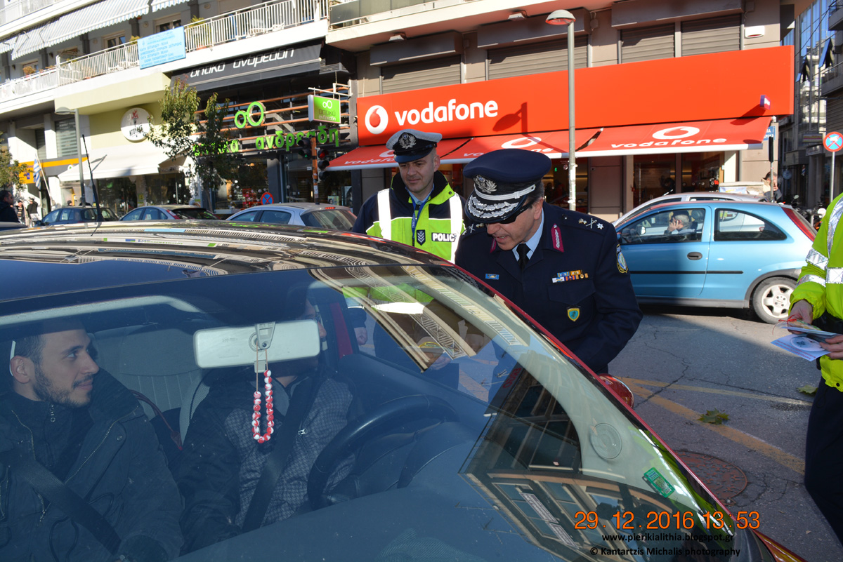 Άντρες και γυναίκες της Τροχαίας Κατερίνης μοίρασαν γλυκά και ενημερωτικά φυλλάδια στους οδηγούς στην κεντρική πλατεία Κατερίνης, παράλληλα με τις ευχές τους για καλές γιορτές και ευτυχισμένο το νέο έτος.