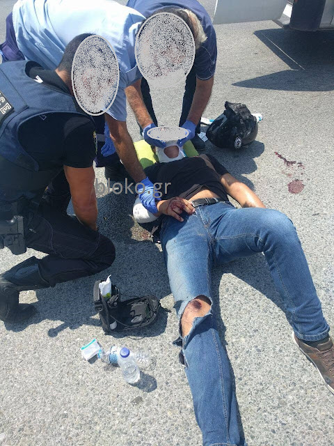 Βλέπουν τον αναβάτη πεσμένο στην άσφαλτο, χωρίς κράνος.
