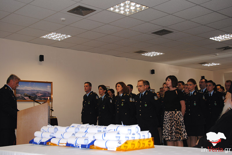 Νωρίτερα, ο Μητροπολίτης Βεροίας, Ναούσης και Καμπανίας τέλεσε δέηση, ενώ ο διοικητής της Σχολής, Αστυνομικός Υποδιευθυντής Διονύσιος Κούγκας εκφώνησε την Ημερήσια Διαταγή.