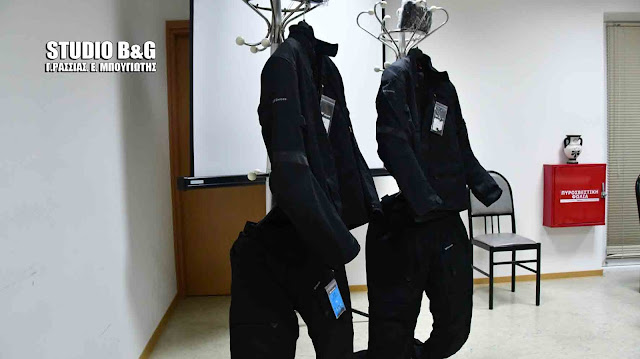 Δεκαέξι ειδικές στολές μοτοσικλετιστών δώρισε η τράπεζα ALPHA BANK, στην Αστυνομική Διεύθυνση Αργολίδος προκειμένου να εξοπλιστούν οι αστυνομικοί που υπηρετούν στην ομάδα ΔΙΑΣ στο Ναύπλιο και το Άργος την Τετάρτη 22 Νοεμβρίου 2017 σε εκδήλωση που έγινε στο κτίριο της Αστυνομικής Διεύθυνσης.