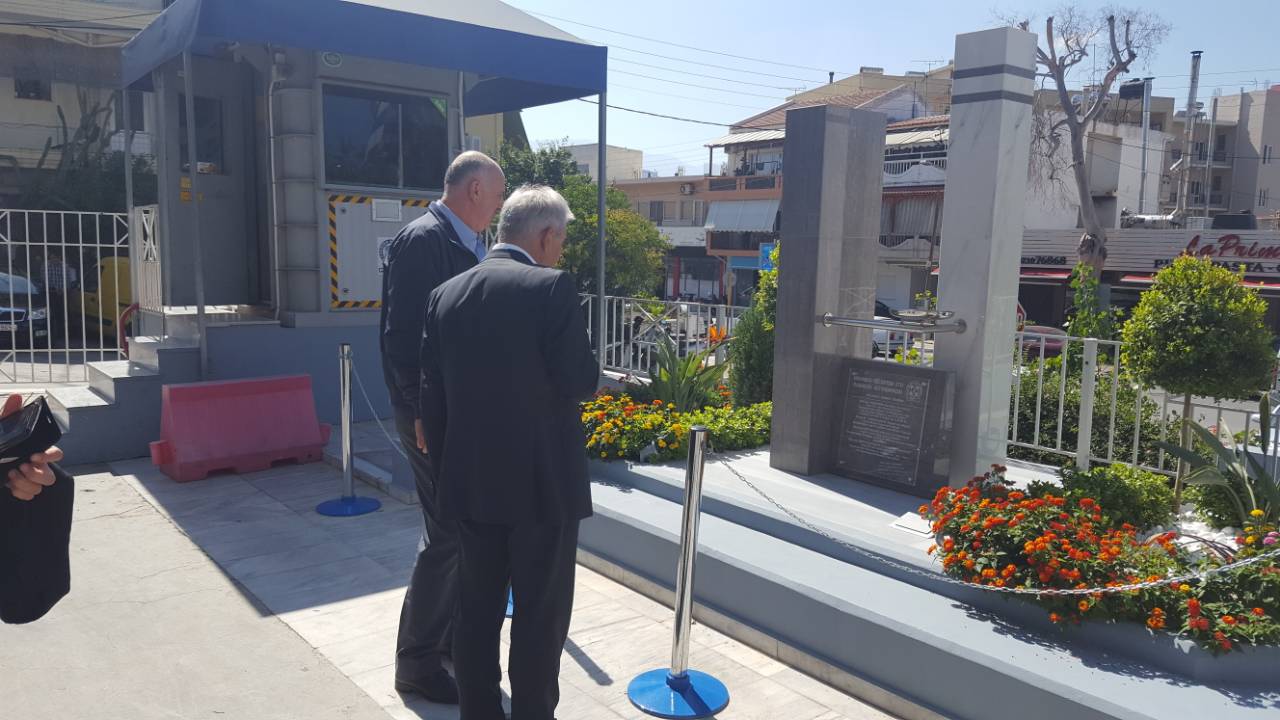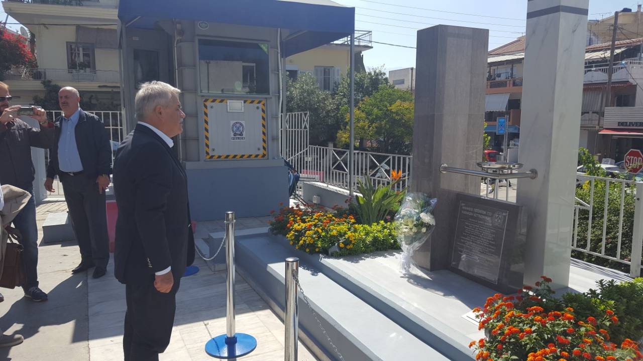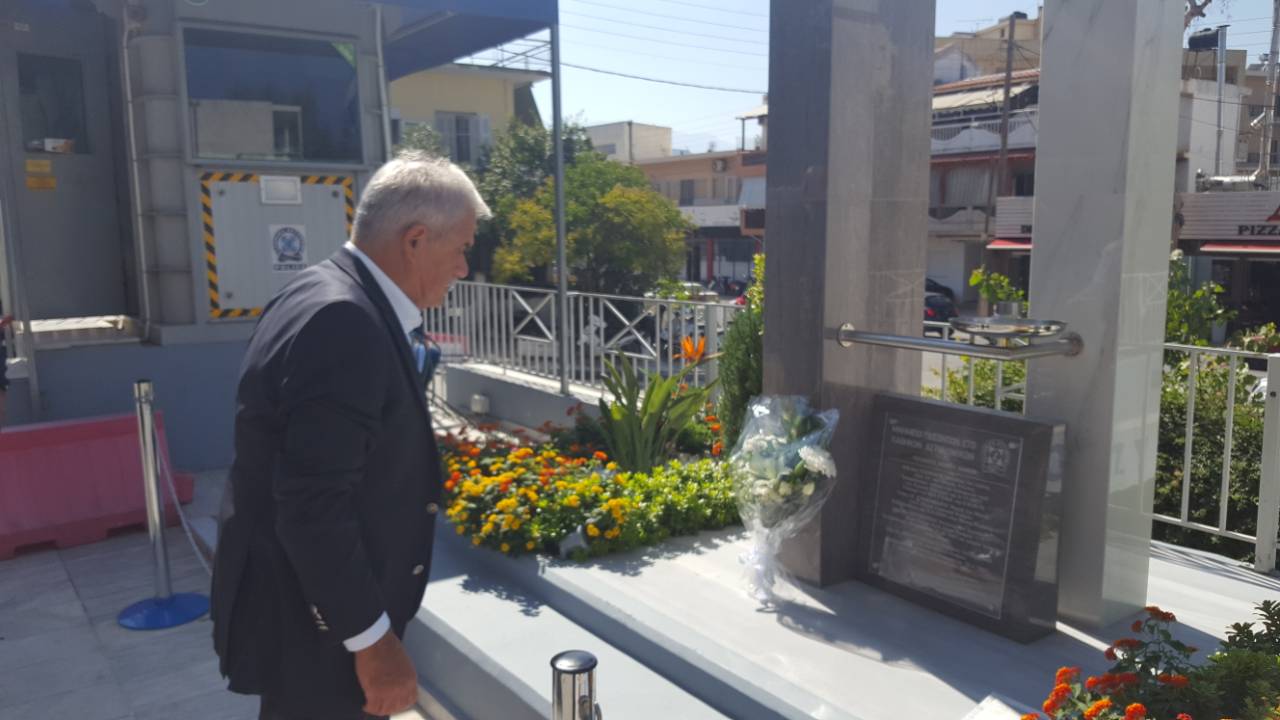 Ο αναπληρωτής υπουργός προστασίας του πολίτη, κ Νίκος Τόσκας, αμέσως μετά τη συνέντευξη τύπου που παραχωρήθηκε στο Αστυνομικό Μέγαρο Χανίων, σχετικά με την απελευθέρωση του επιχειρηματία κ Λεμπιδάκη, απότισε φόρο τιμής στους αδικοχαμένους συναδέλφους μας, καταθέτοντας λίγα λουλούδια στο Μνημείο Πεσόντων Αστυνομικών, που ανεγέρθη από την Ένωσή μας, στον προαύλιο χώρο του Αστυνομικού Μεγάρου Χανίων.